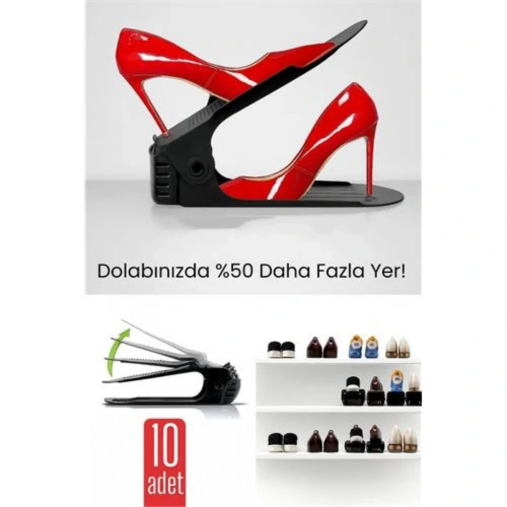 Bu 10'lu ayakkabı düzenleyici seti, ayakkabılarınızı üst üste yerleştirerek dolap içi alanı optimize eder.