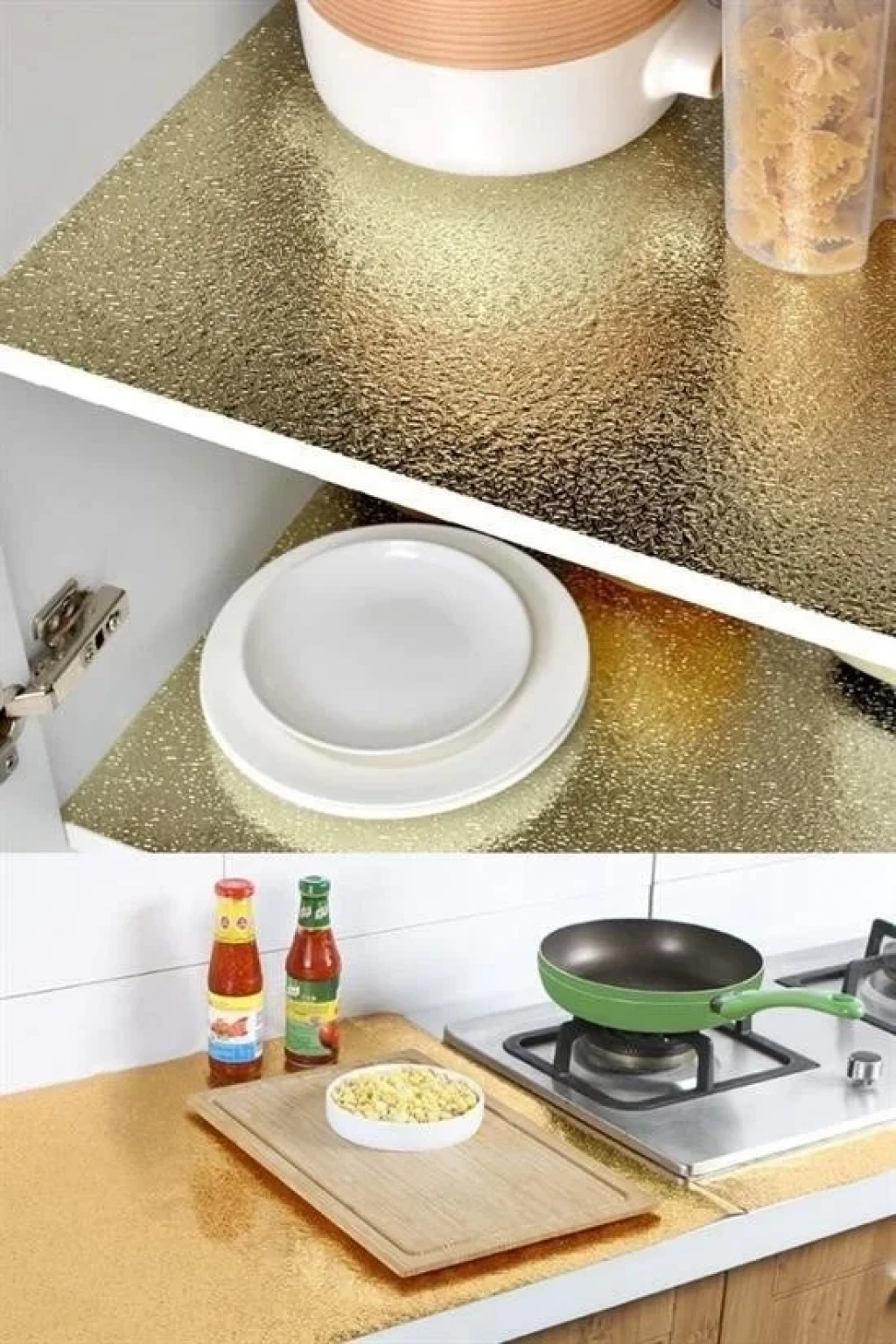 10 Metre Kendinden Yapışkanlı Silinebilir Mutfak Tezgah Üstü Sticker Folyo Gold Renk