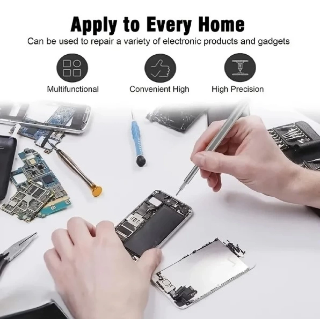 1.24-in-1 tornavida seti: bu Set 24 farklı tornavida ucu içerir, bu da çok yönlü ve çeşitli görevler için uygundur. Cep telefonları, gözlükler, kameralar, saatler ve diğer ev eşyalarını onarmak için özelleştirilebilir.