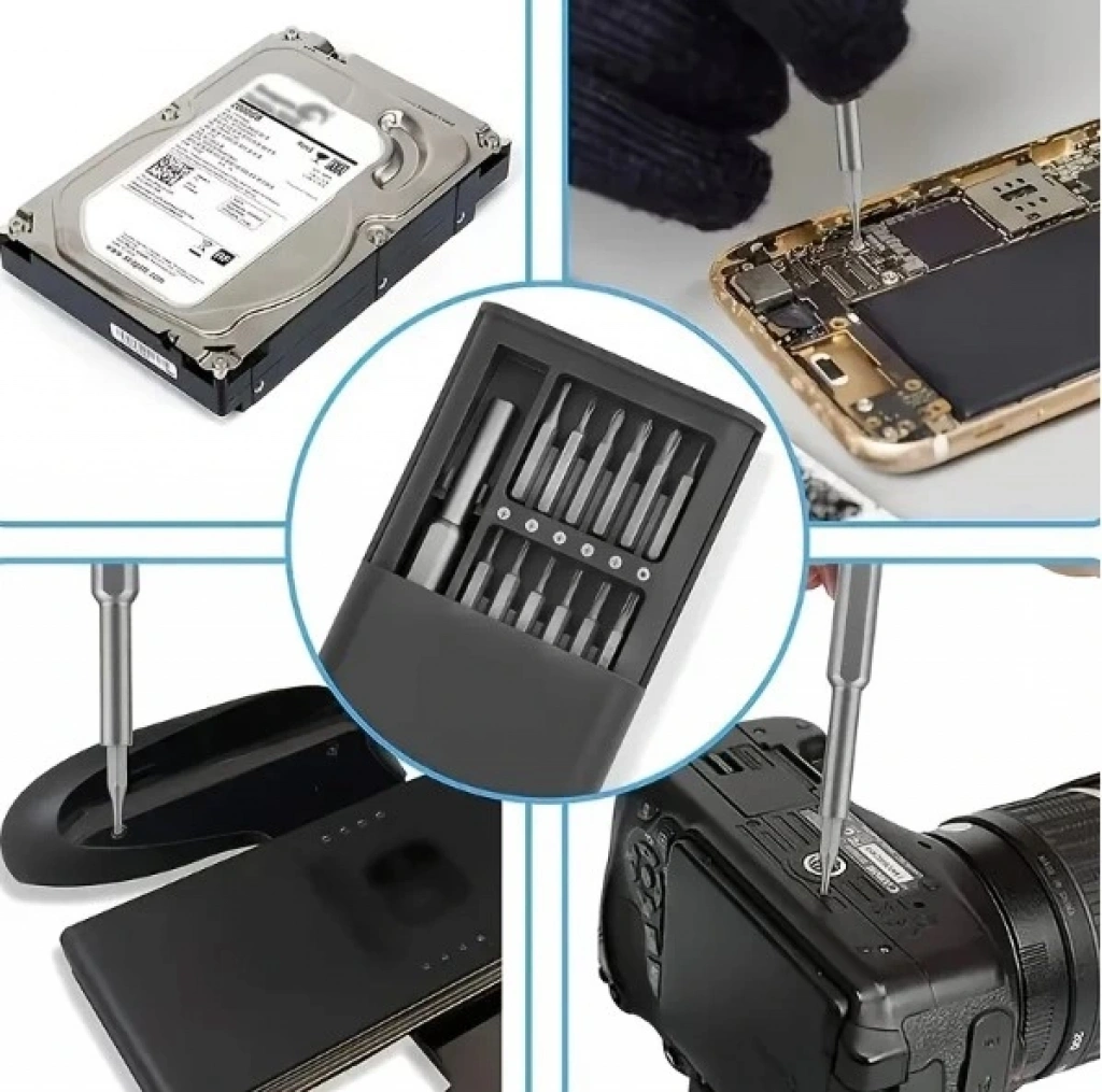 1.24-in-1 tornavida seti: bu Set 24 farklı tornavida ucu içerir, bu da çok yönlü ve çeşitli görevler için uygundur. Cep telefonları, gözlükler, kameralar, saatler ve diğer ev eşyalarını onarmak için özelleştirilebilir.