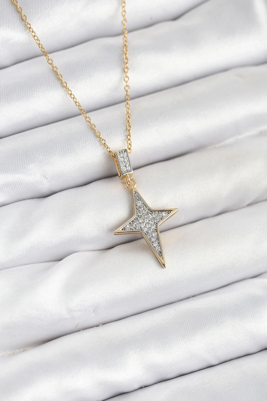 316L Çelik Zincir Gold Renk Kutup Yıldızı Model Zirkon Taşlı Kadın Kolye
