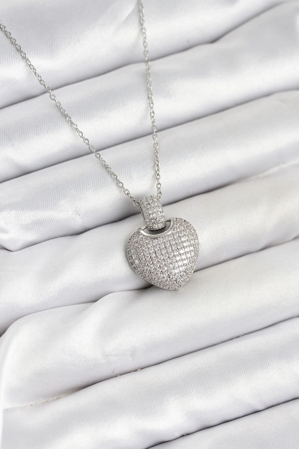 316L Çelik Zincir Gümüş Renk Zirkon Taşlı Kalpli Kadın Kolye