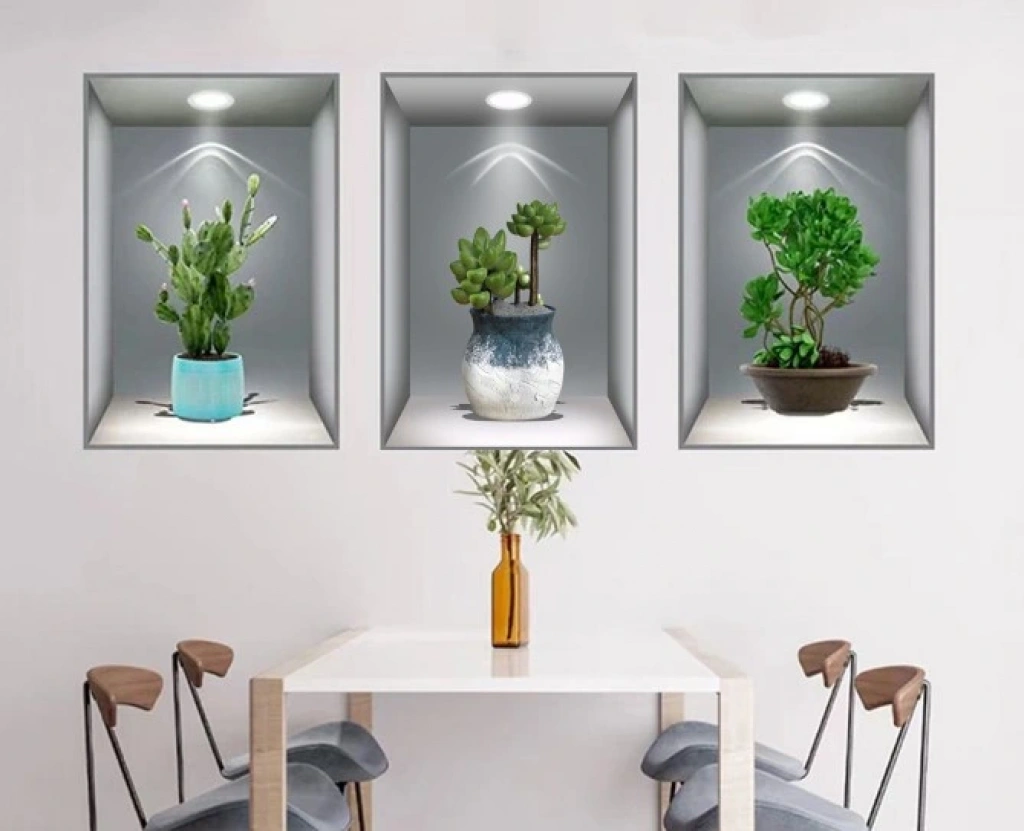 Geniş kullanım alanı 3D efektli duvar çıkartmaları vazo ve çiçek deseni olarak tasarlanmıştır ve eviniz için dekorasyon olarak mükemmeldir. Duvar, kapı, dolap, pencere, buzdolabı vb. için uygundur.