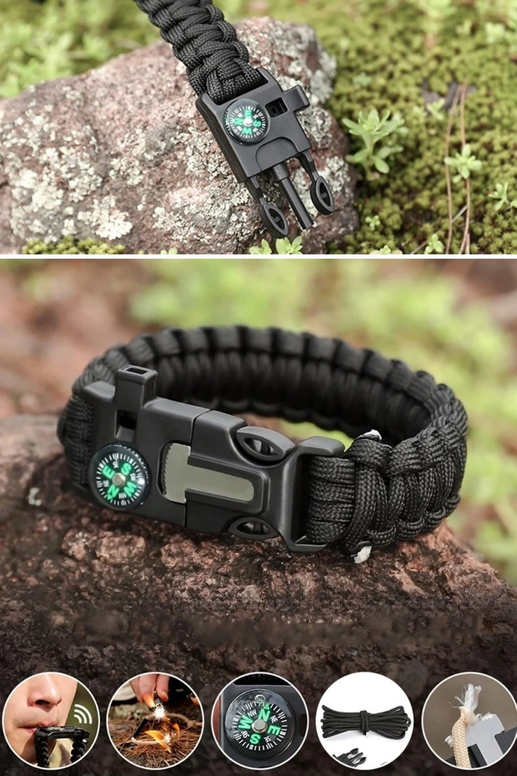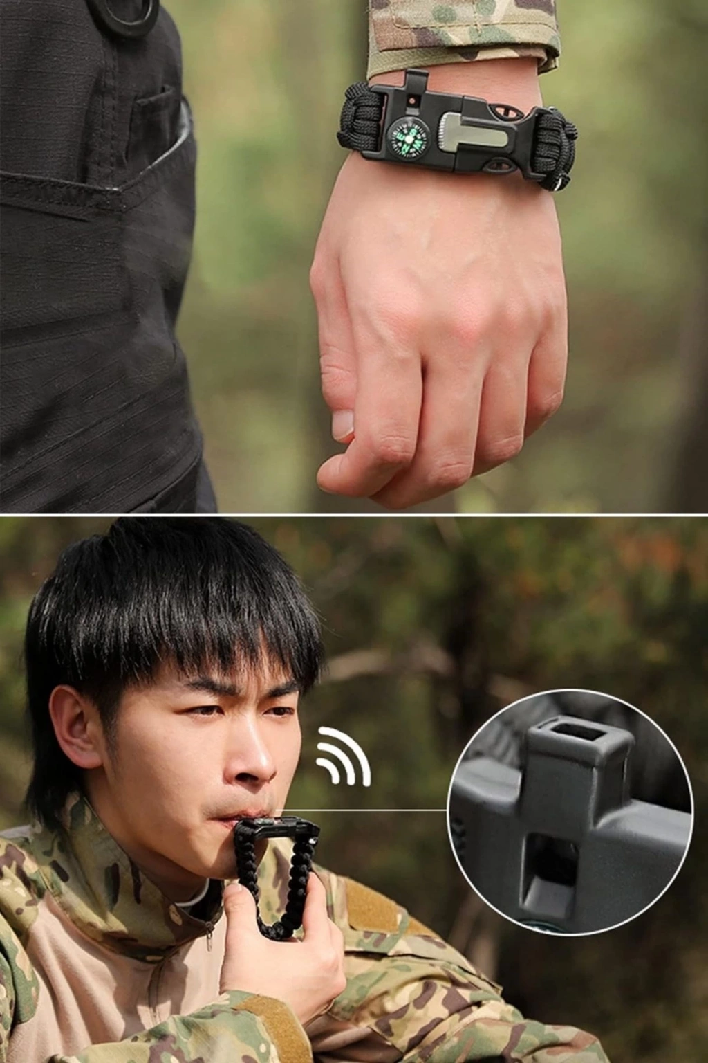 5'i 1 Arada Çok Fonksiyonlu Bileklik, hayatınızı kolaylaştırmak ve güvenliğinizi artırmak için tasarlanmıştır. Kampçılar, doğa tutkunları ve outdoor meraklıları için harika bir hediye seçeneğidir.