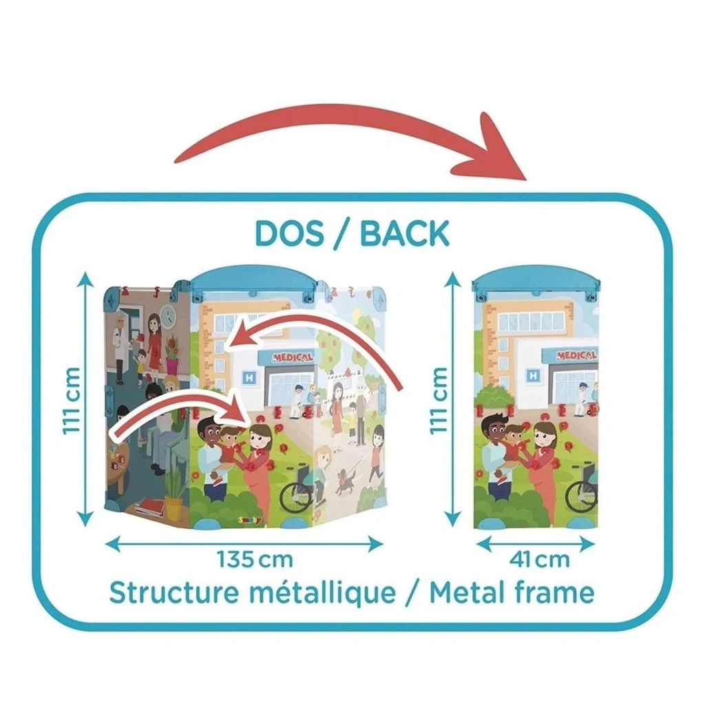 Tıp dünyasıyla ilgili birçok fonksiyonu bulabilecekler: Radyoloji köşesi, vücut kısımlarını tanıma, beslenme bölümü, göz çizelgesi, yaralanma saati, büyüme tablosu, 1,20 m'ye kadar kareli boy çubuğu, kukla banyo baskülü, saat. bir istişarenin ilerleyişini açıklamak ve çok daha fazlası ...
