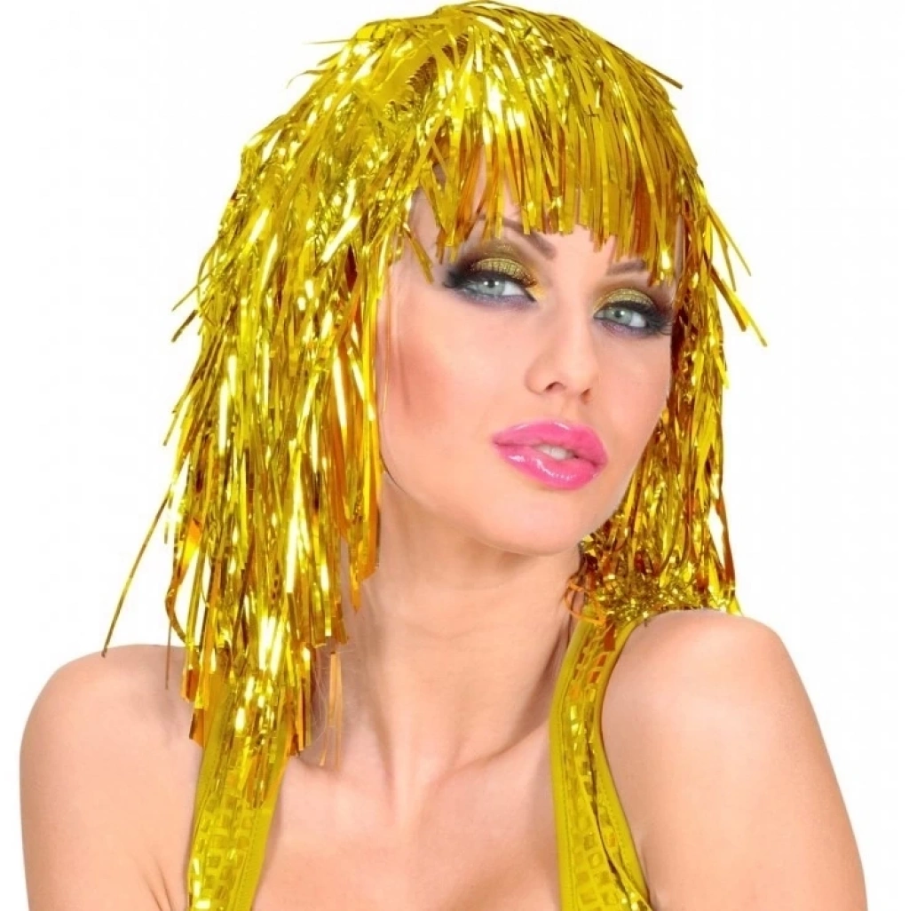 Altın Sarısı Işıltılı Metalize Parti Peruğu