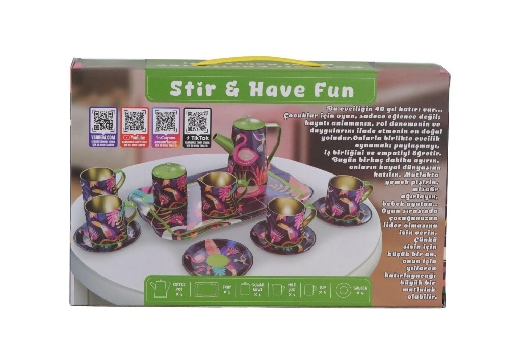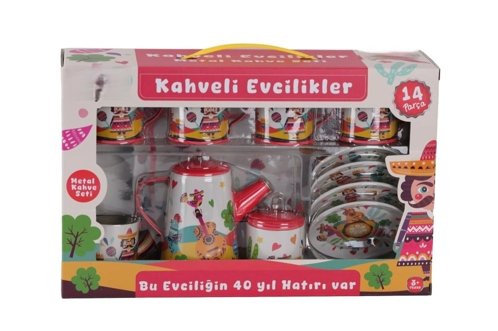 Mey İthalat® ATF-996-7A-10A 14 PARÇA DESENLİ METAL ÇAY SET
