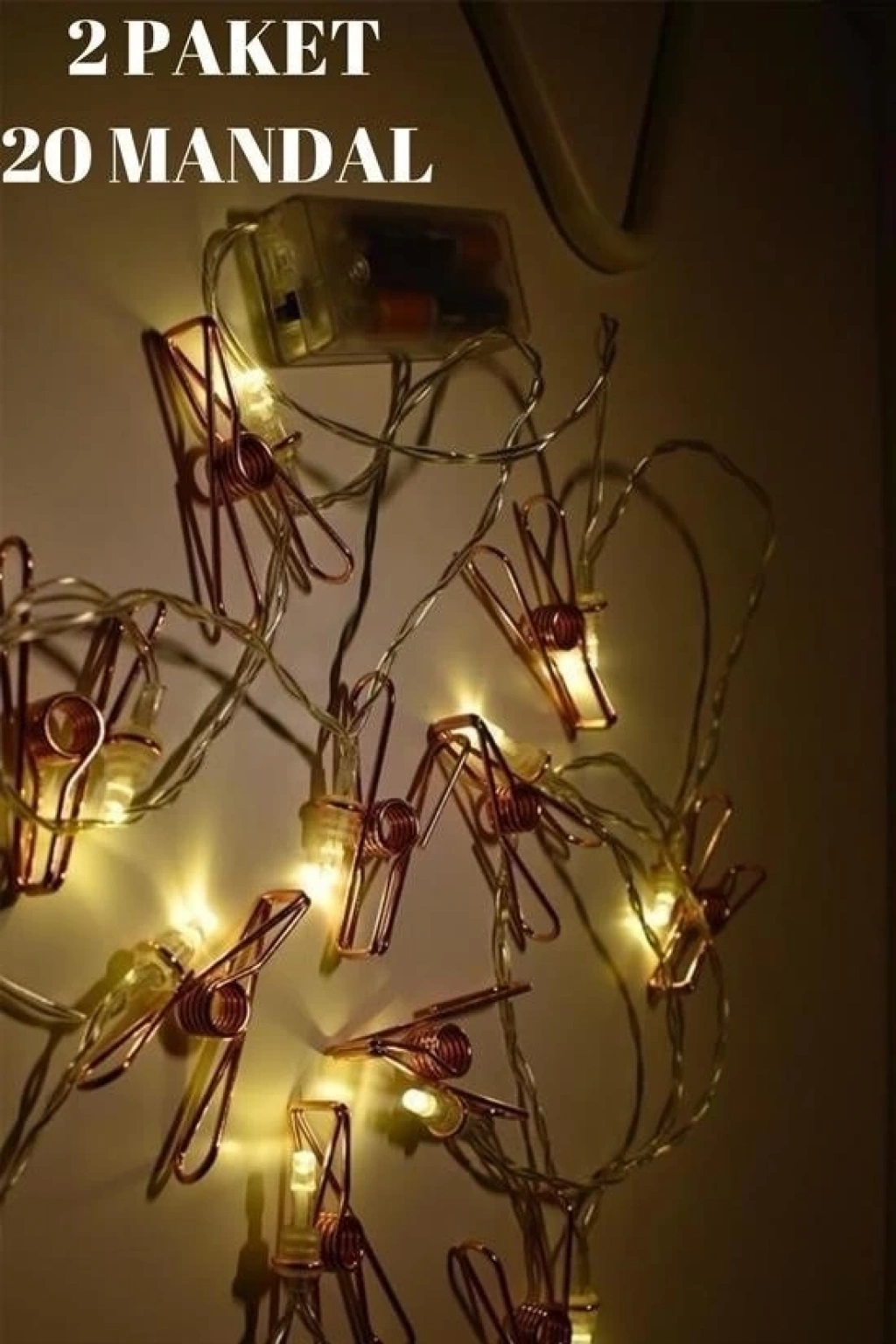 Fotoğraf Mandalı Led Işık Şeriti üzerinde 10 ade ışıklı mandal bulunmaktadır