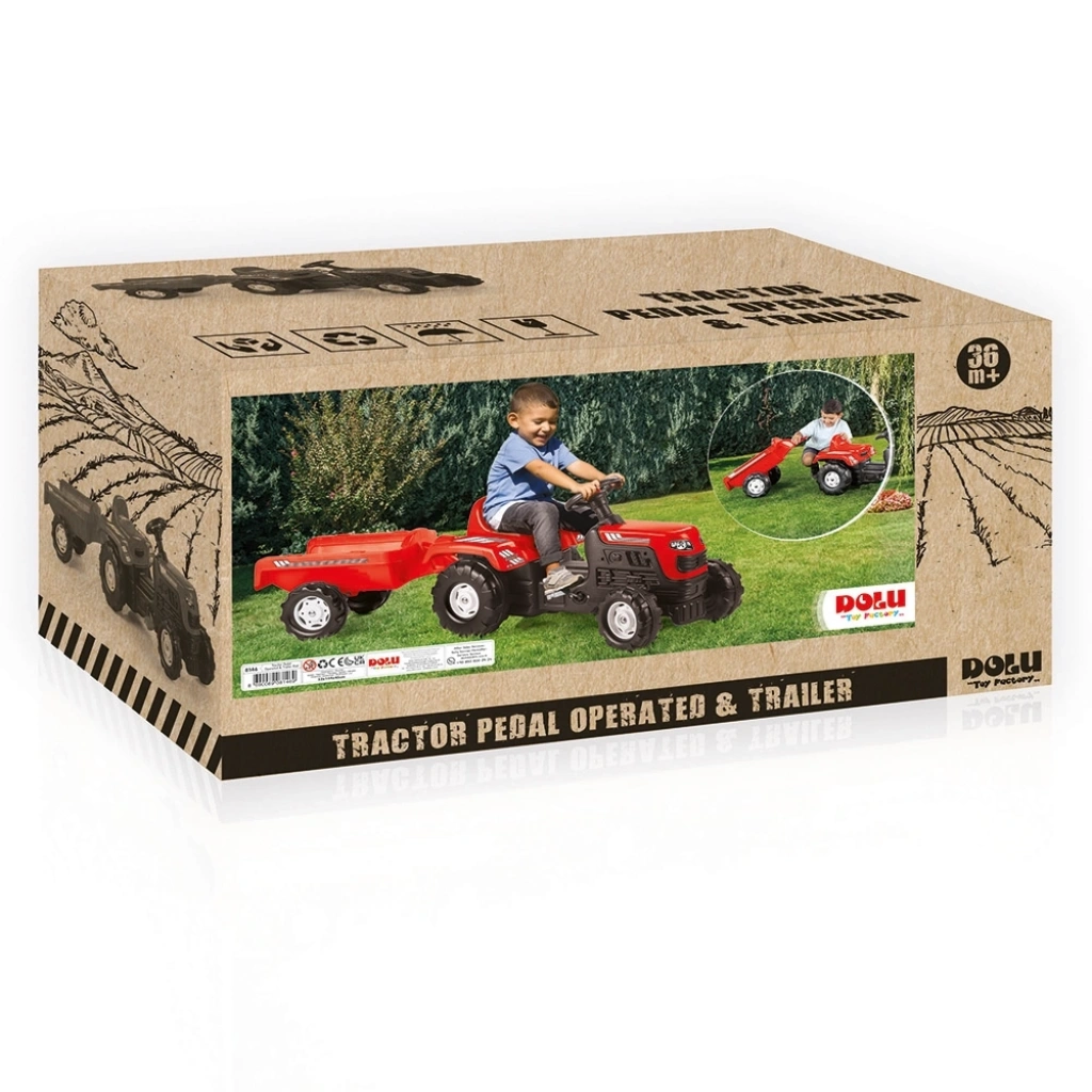 36 ay ve üzeri çocuklar için uygundur. 52x144x45 cm ölçülerindedir. Pedallıdır. Arkasında römorku vardır ve kornalıdır. Kutu içindedir, sağlam ve dayanıklıdır. İç ve dış mekanda kullanılabilir. Beden gelişimine yararı vardır.