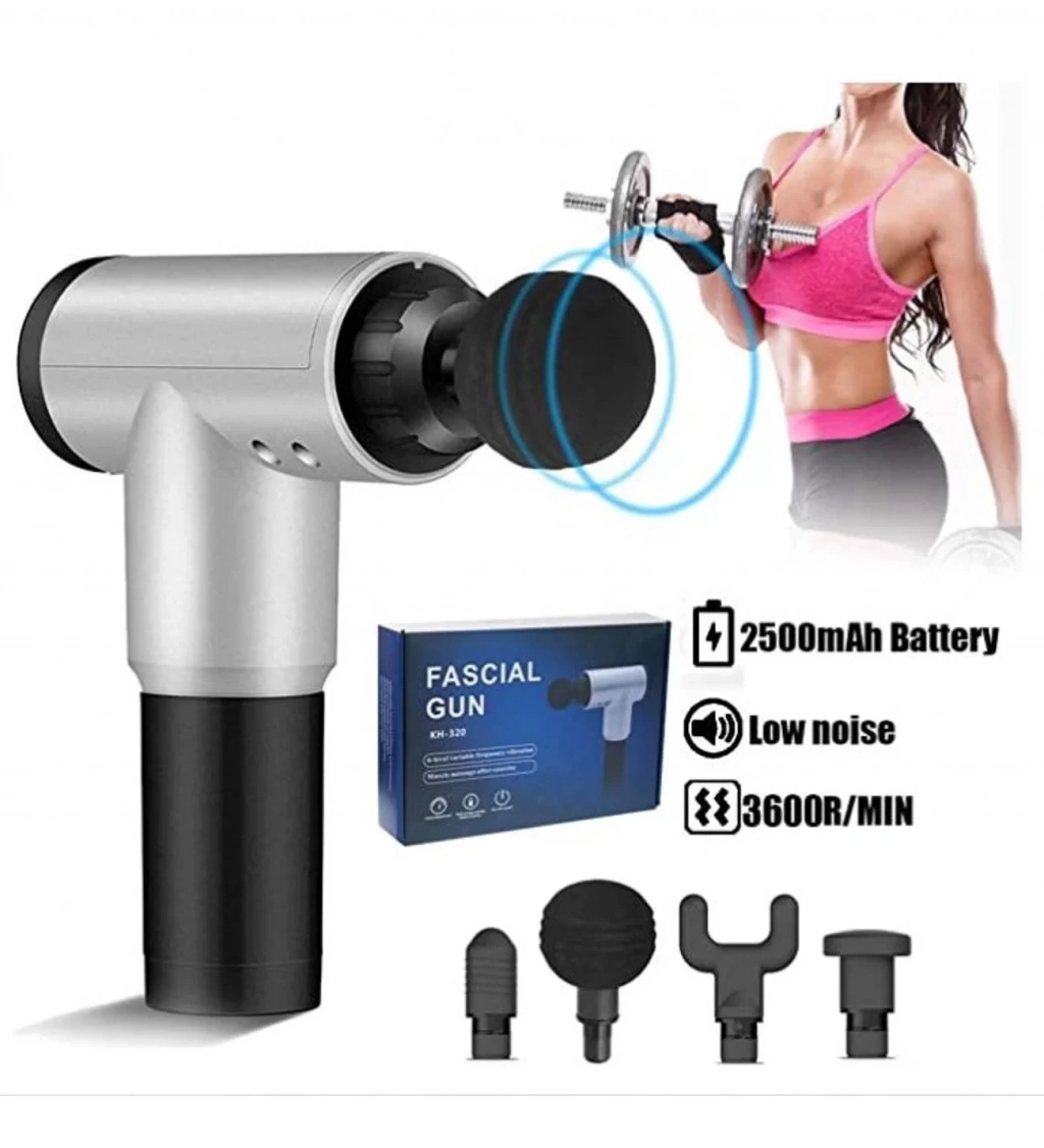 Fascial Gun RH-320 6 Kademe Hız Ayarlı, 4 Parça Başlıklı, Usb Şarjlı, Masaj Tabanca Aleti