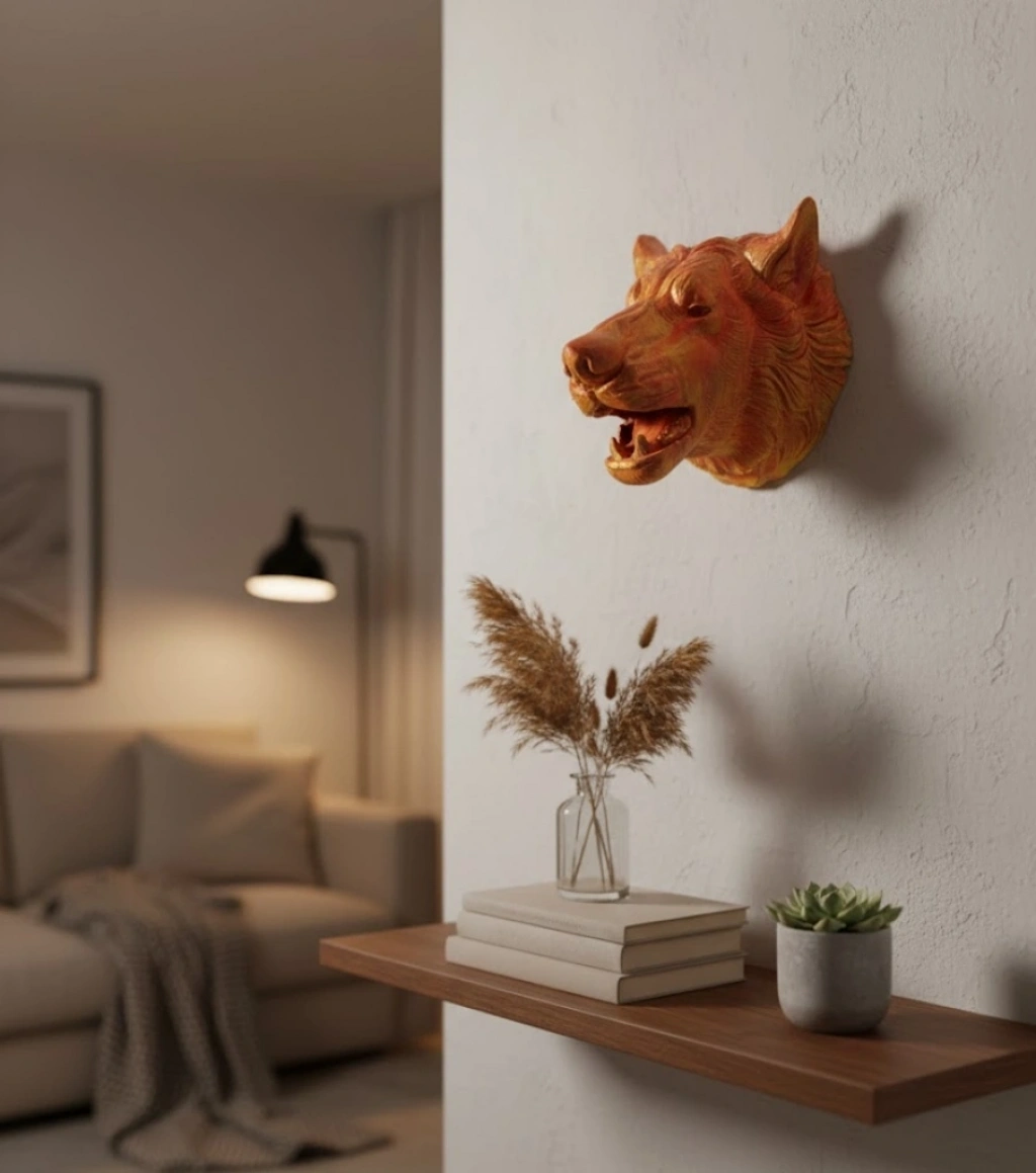 Mey İthalat® Gold Renk 3D Kurt Başı Duvar Dekoru