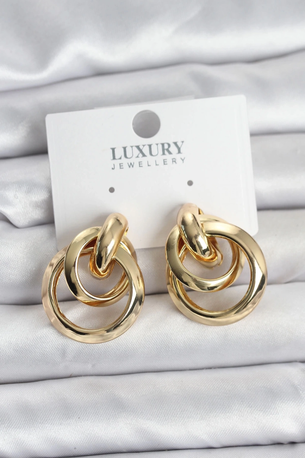 Gold Renk Halka Model Pirinç Kadın Küpe