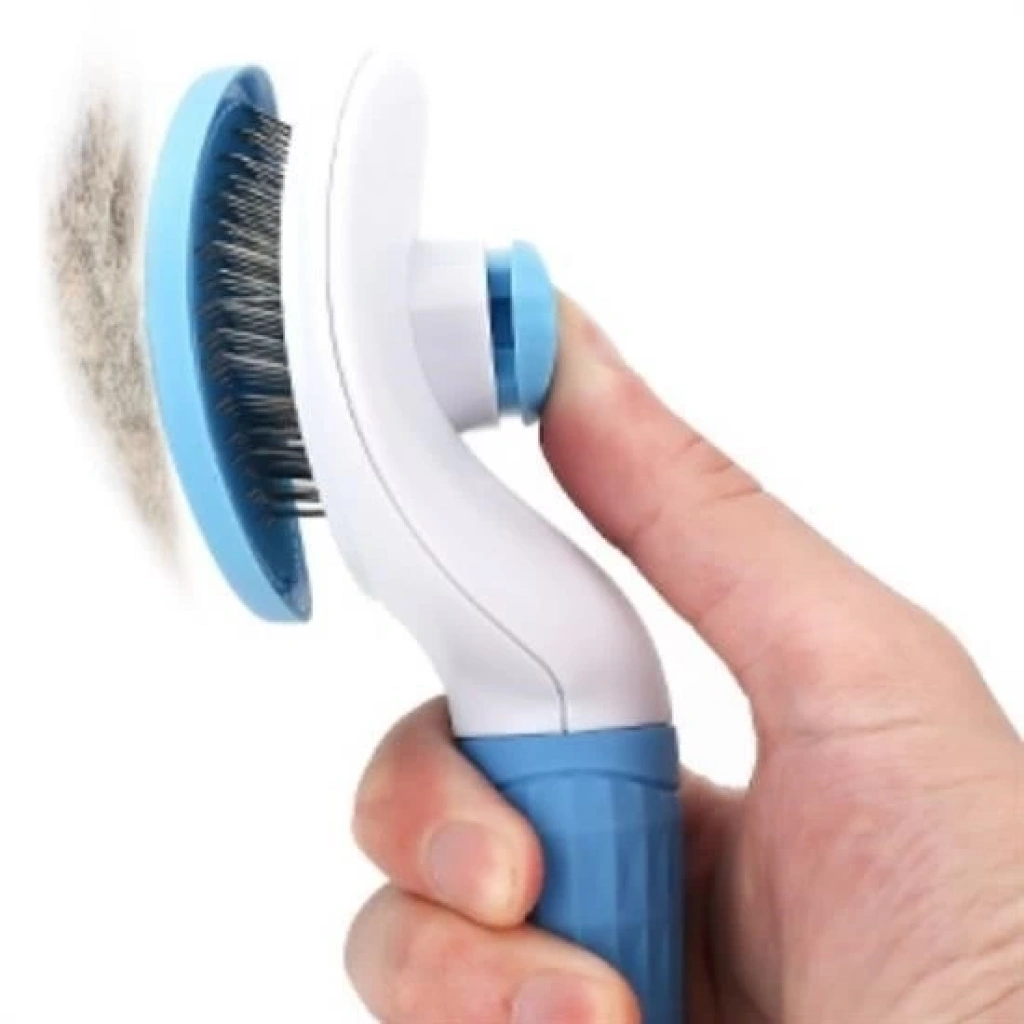 Kedi Köpek Tüy Toplayıcı Kendini Temizleyebilen Ergonomik Saplı Kullanımı Rahat Kaymaz Evcil Hayvan Tarağı Mavi