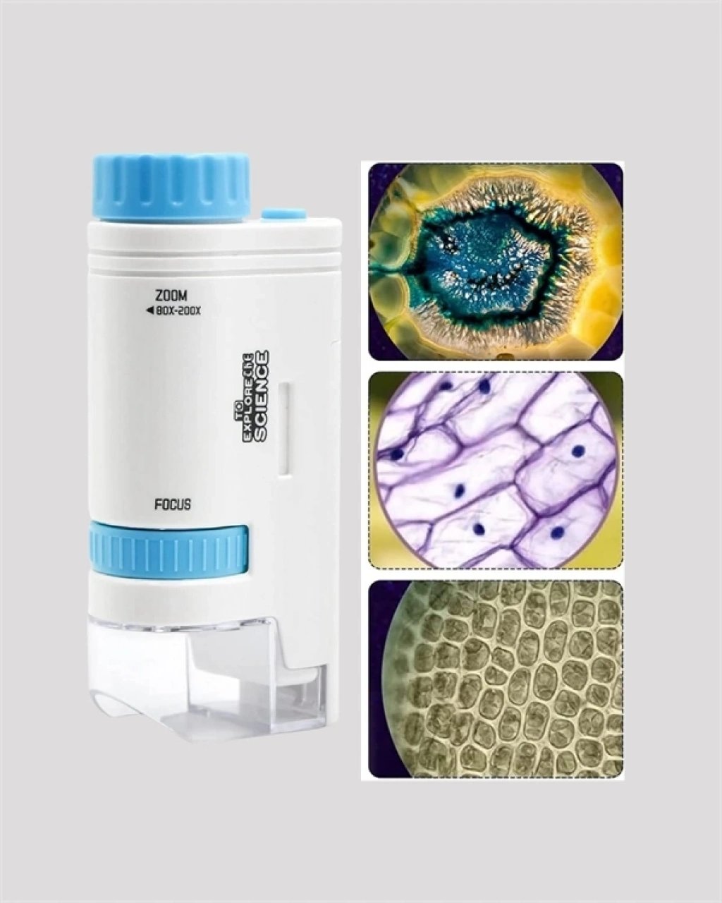 LED ışıklı taşınabilir cep mikroskopu, bilim meraklıları ve öğrenciler için özel olarak geliştirilmiş pratik bir gözlem aracıdır. 80X ila 200X arasında gerçek büyütme sunan bu mini mikroskop, güçlü PMMA optik lensleri ile üstün görüntü netliği sağlar. Cihazın yerleşik LED ışığı sayesinde düşük ışıklı ortamlarda bile net görüntüler elde edebilirsiniz. LED ışık, nesneye yaklaştırıldığında kolayca aktif hale gelir ve detayları daha görünür kılar. Ergonomik tasarımı ve yalnızca 10,5 cm’lik uzunluğuyla cebinize veya çantanıza sığar; seyahatlerde, doğa yürüyüşlerinde ya da okul projelerinde kolay taşınabilirlik sunar. İki adet AAA pil ile çalışan mikroskop, kolay kullanım için sadece bir düğmeyle çalışır. Odaklama tekerleği sayesinde saniyeler içinde görüntüyü netleştirebilirsiniz. Hem çocuklara hem yetişkinlere hitap eden bu cihaz, mikroskobik dünyanın kapılarını aralamanızı sağlar.