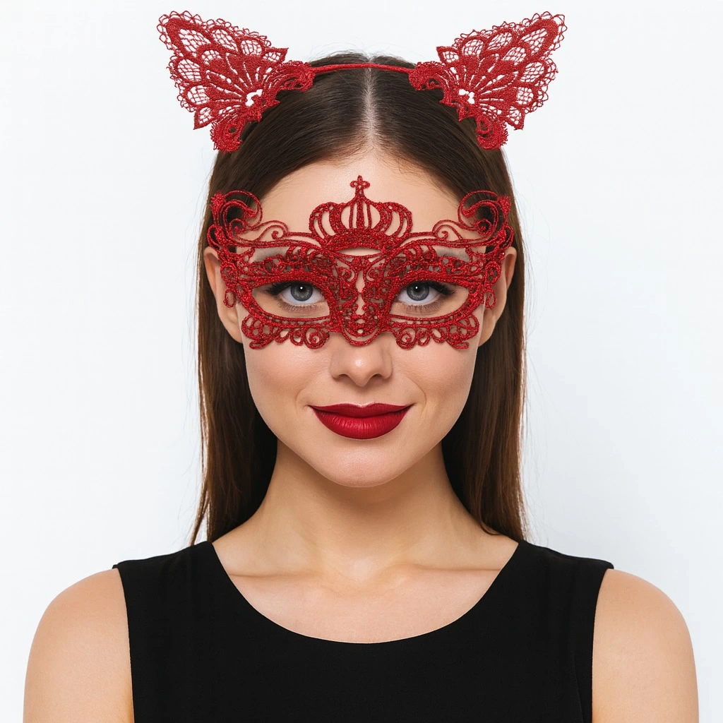 Kırmızı Dantel Kraliçe Maskesi ve Kedi Kulak Taç Seti, özel günlerinizde zarif ve etkileyici bir görünüm sunar. Şık kırmızı dantel detaylı maskesi ve kedi kulak şeklindeki tacı ile balo, parti, kına, doğum günü, dans gecesi, kostüm etkinlikleri ve festivaller için mükemmel bir tamamlayıcı aksesuardır. Yüksek kaliteli malzemeden üretilmiş olup, hafif yapısıyla rahat kullanım sağlar. Fotoğraf çekimlerinde ve sahne performanslarında göz alıcı bir stil oluşturur.