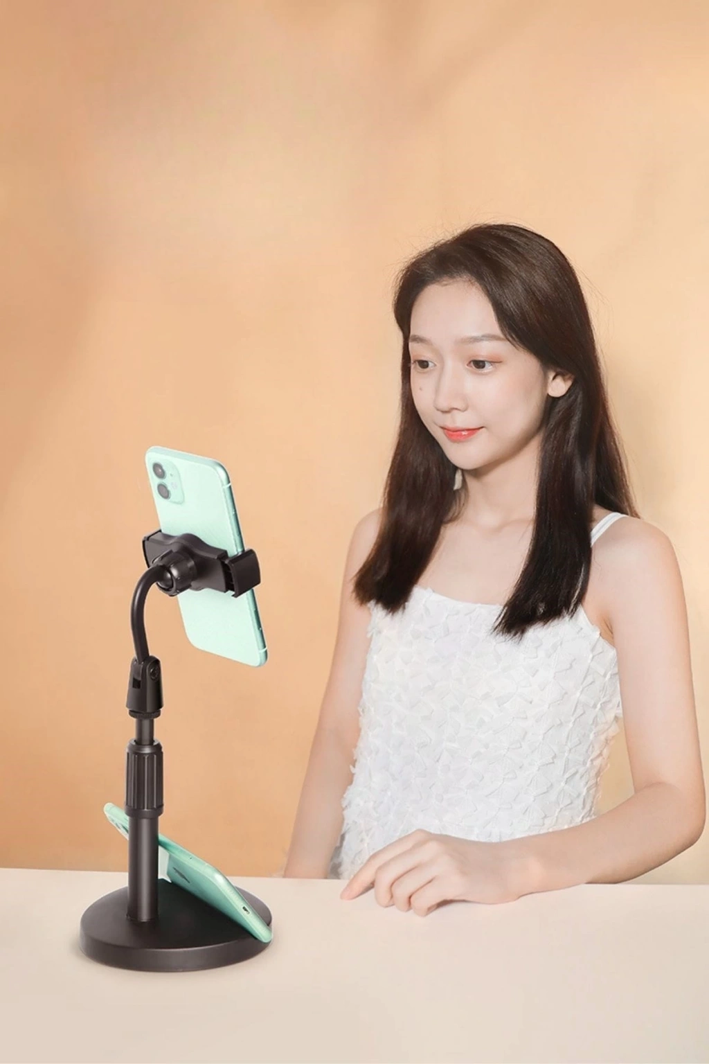 Masa Üstü Tablet ve Telefon Tutucu Plastik Aparat, siyah renkli şık tasarımı ile hem tablet hem de telefonlarınız için ideal bir stand çözümüdür. Çalışma masasında, mutfakta, yatak odasında veya ofiste, cihazlarınızı dik ya da yatay konumda sabit tutarak kullanım kolaylığı sağlar.