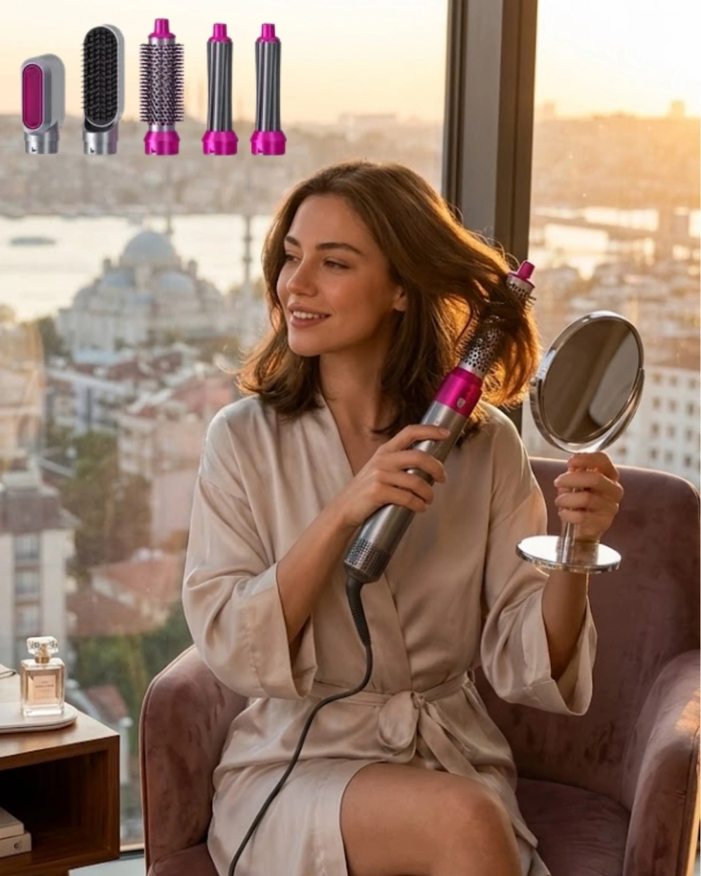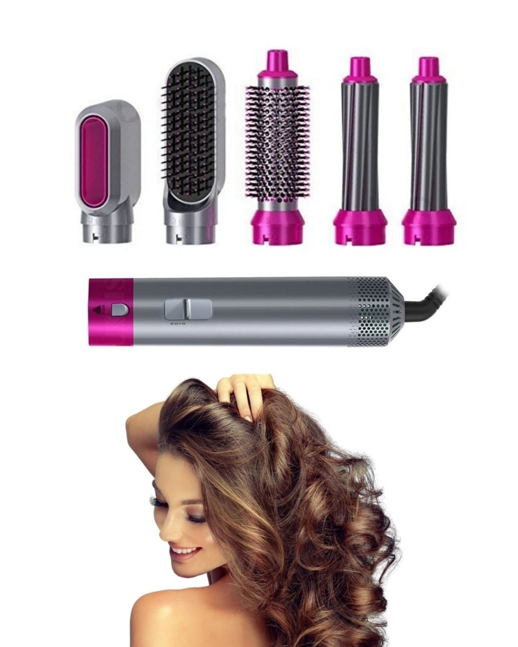 Saç şekillendirme ihtiyaçlarını karşılamak üzere tasarlanmış 5 fonksiyonlu saç şekillendirici set, çok yönlü kullanım imkanı sunar. Farklı başlık seçenekleri ile saçınıza istediğiniz şekli verebilir, her gün farklı bir görünüm elde edebilirsiniz.1000W gücü ile hızlı ısınan cihaz, etkili ve pratik kullanım sağlar. 4 farklı ısı ayarı ile saç tipine uygun sıcaklık seçilebilir.Döner kablo yapısı kullanım kolaylığı sağlar. Ergonomik tasarımı ile rahat bir tutuş sunar.Aşırı ısınma koruması sayesinde güvenli kullanım sunan cihaz, uzun süreli performans sağlar.Set içerisindeki başlıklar sayesinde saçınıza hacim verebilir, dalga oluşturabilir veya düzleştirme işlemi yapabilirsiniz.Evde profesyonel saç bakımı yapmak isteyenler için ideal bir üründür. Hem ekonomik hem de kullanışlı yapısı ile öne çıkar.