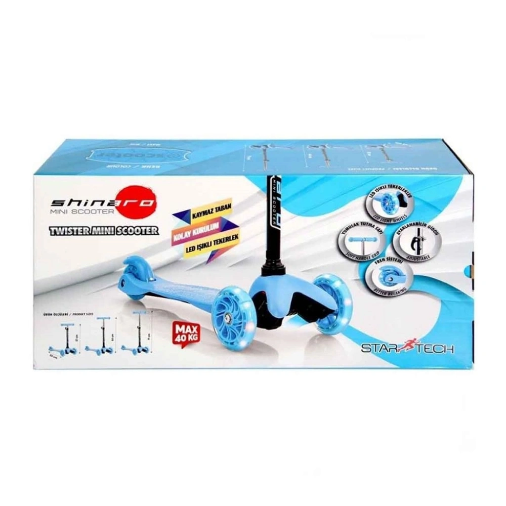 Mey İthalat® Twist Işıklı Scooter Mavi 40 Kg Kadar