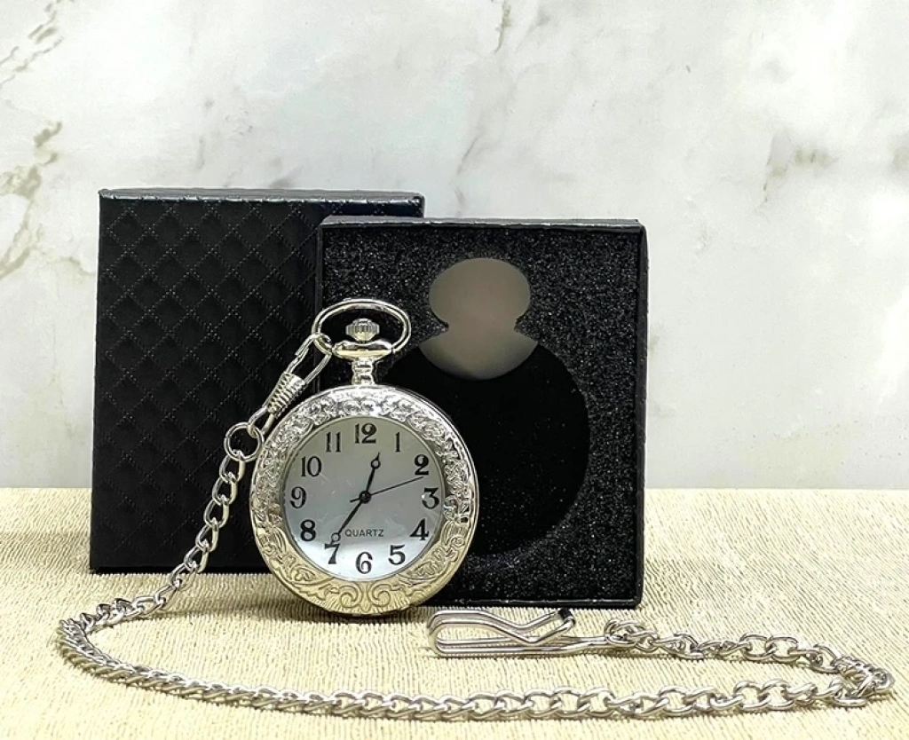 Özel Kutulu Gümüş Köstekli Saat Alk4686 Ürün Ölçüleri 4*5 Cm