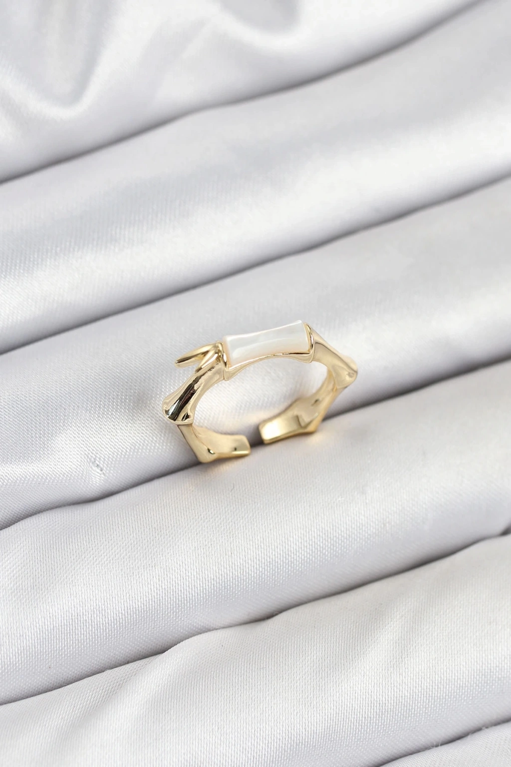 Pirinç Gold Renk Beyaz Gül Model Ayarlanabilir Kadın Yüzük