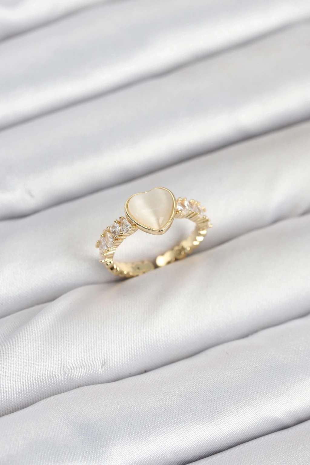Pirinç Gold Renk Zirkon Taşlı Kalpli Kadın Yüzük
