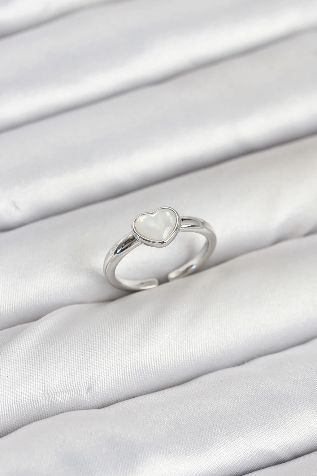 Pirinç Gümüş Renk Kalpli Kadın Yüzük