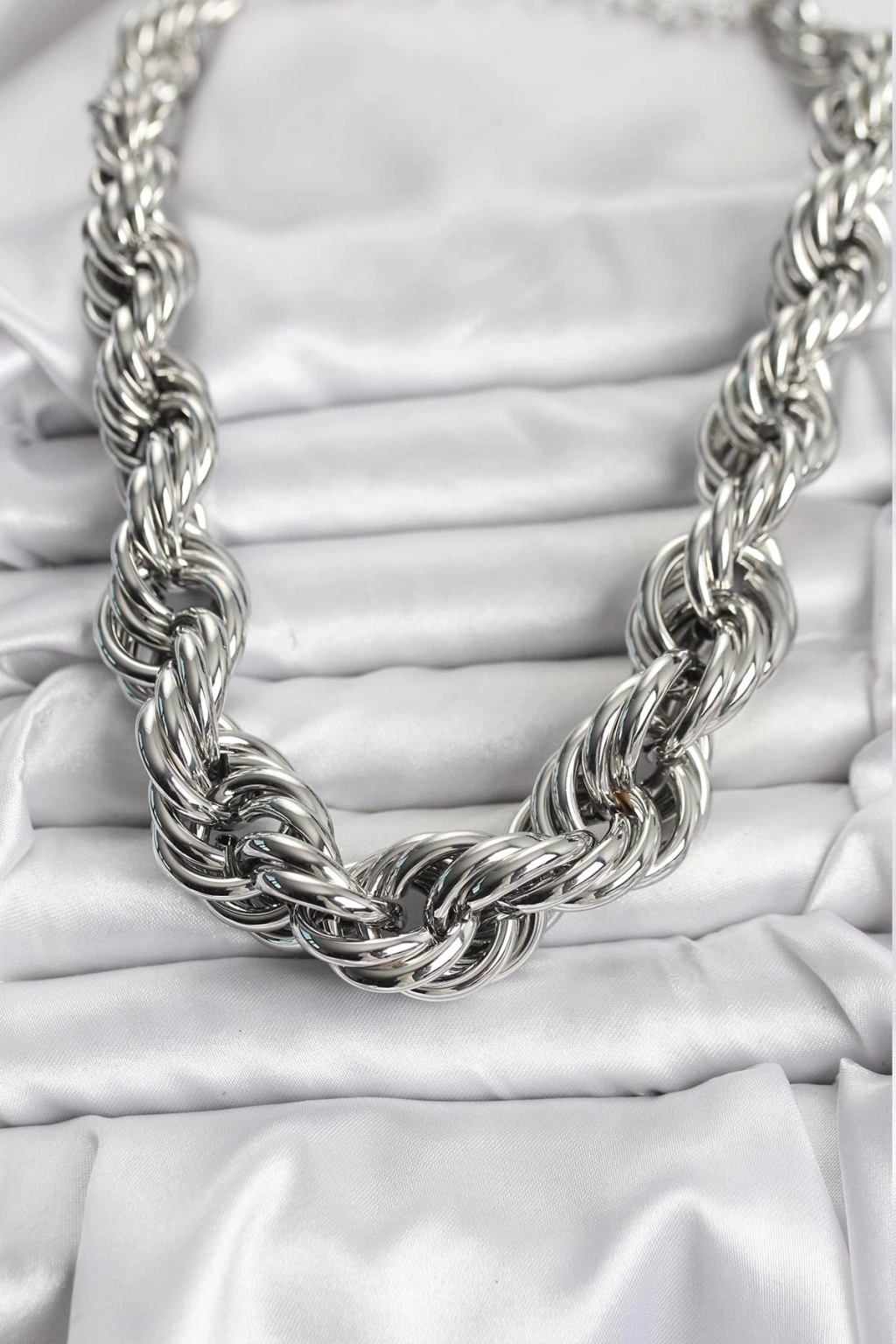 Pirinç Gümüş Renk Sarmal Halat Model Kadın Kolye