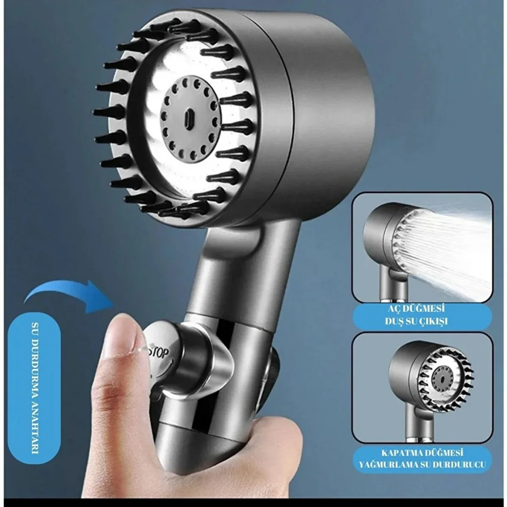Duş Başlığı 3 Farklı Mod Masajlı Başlık Yeni Nesil Masaj Uçlu Filtreli Stop Tuşlu 3 Fonksiyonlu Su Tasarruflu Basınçlı Duş Başlığı